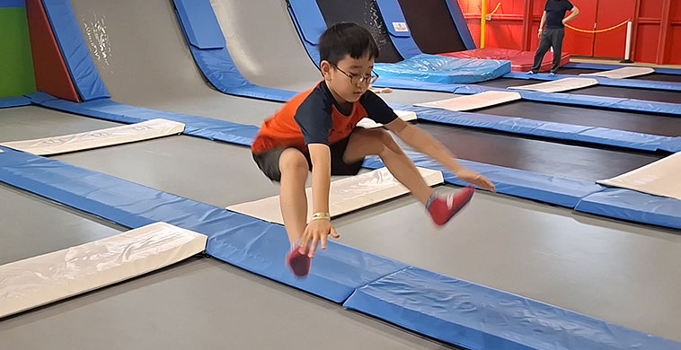 1つのトランポリンを複数人で遊ぶことは出来ないルールになっていて、接触事故が起こりにくいように配慮されていた。