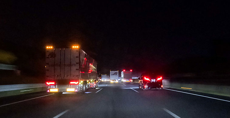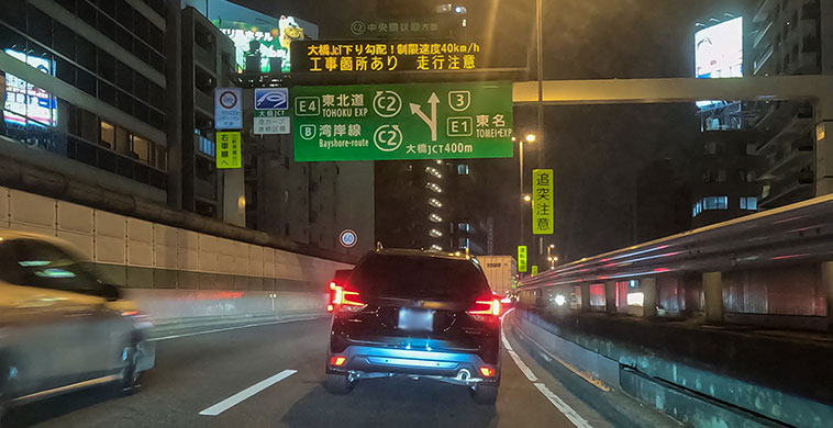 金曜の22時に出発して、渋谷ICから首都高。そのまま東名にスイッチしてひたすら西に進む。この時間帯にしては、想像よりも一般車が多く走っている印象。