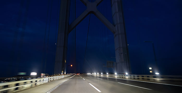 その後は新東名に移り、長篠設楽原PA と 土山SA で小休止を挟みつつ、5時過ぎに明石海峡大橋で淡路島。