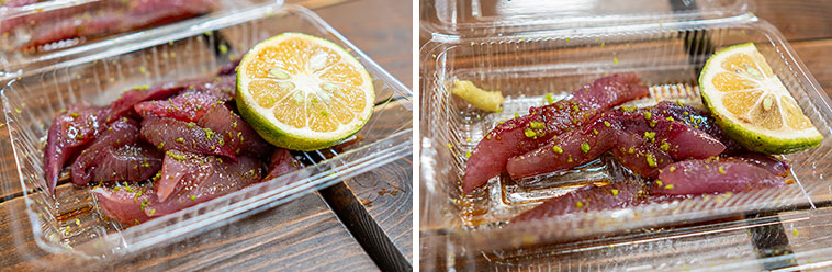 どれを好むかは人それぞれだが、やはり一番個性的かつここまで来て食べる意味があるのはメジカで間違い無い。仏手柑も他の柑橘類より酸味や苦味が尖っておらず、カツオの味わいを消さずに寄り添ってくれる、優しいアクセントとして一役買っている。