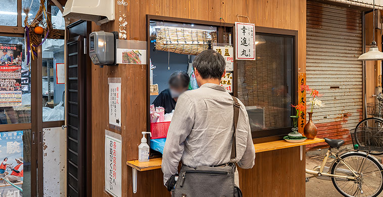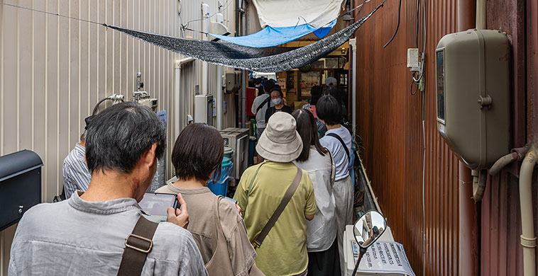 4つの店はそれぞれ決められた場所に待機列が作られていて、特定の店に偏っている感じは無さそう。Googleマップも各店個別ではなく横丁全体のレビューしか掲載されていないので、どの店に並んでも大きな違いは無いと判断。今回は一番奥の幸進丸に並ぶことにした。