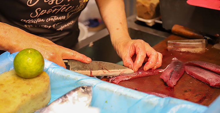 我々の前に並んでいたのは10人程で、これならそこまで時間は掛からないだろうと踏んでいたんだけど、10時の開店以降もなかなか進まない。注文してから捌いてもらう方式で、1人が何匹も注文するため、恐ろしいまでに回転が悪い。