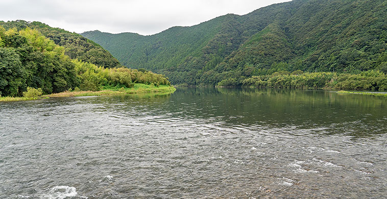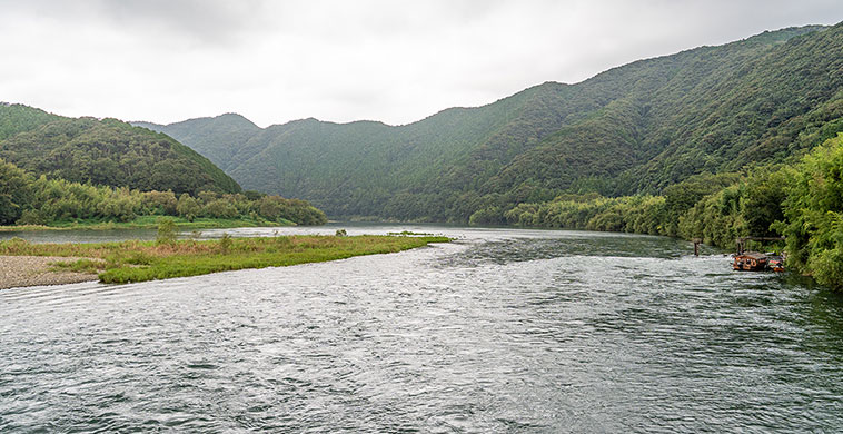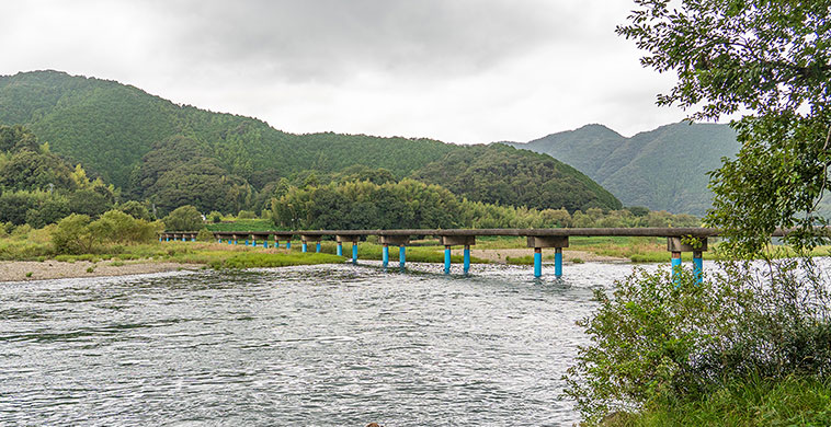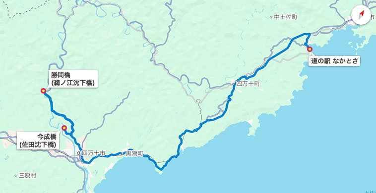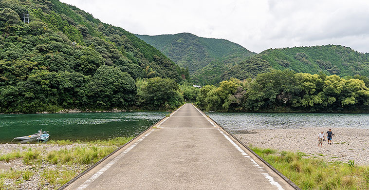 メジカを堪能して、次の目的地は高知を代表する景勝地である四万十川。久礼から海沿いにしばらく南下して、四万十市で折り返して川を遡上するように北に向かう。