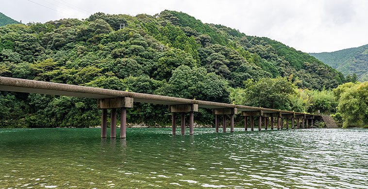 四万十川に架かる9本の沈下橋の中で最下流に位置し、最長の291.6m。幅員は4.2m。基本的に生活道の一部であるため、GW・お盆期間中は観光目的の横断が規制されている。
