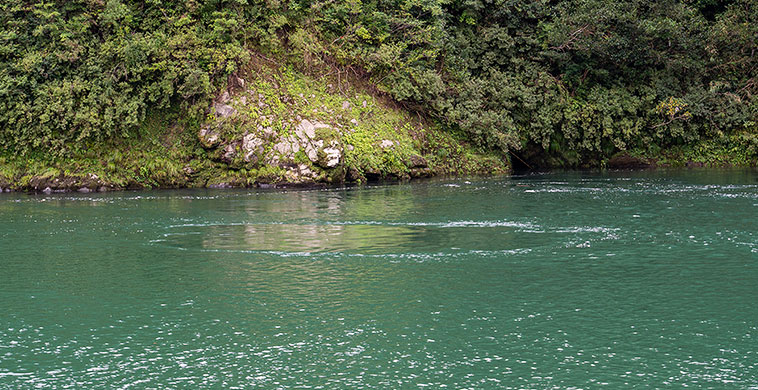 この日は曇天でエメラルドの川面とまではいかなったけど、山々に囲まれた雄大な風景は只々美しい。