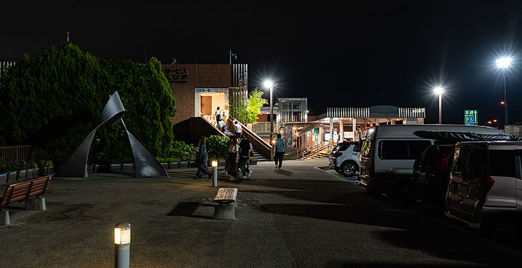 昼食がかなりのボリュームだったので、夕食は道中のサービスエリアでとることにして、早速夜ドライブをスタート。まずは帰りのガソリンを補充するため、港近くのスタンドに立ち寄って給油。