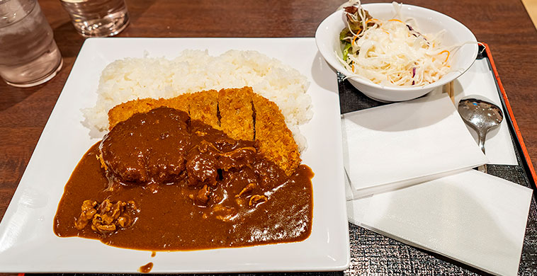 お腹が空き始めていたので、ここで夕食。この旅では最後のまともな食事になりそうだし、毛色を変えて『ジューシーカツカレー』を注文。長い夜を走破するためのカロリーをしっかり充填した。