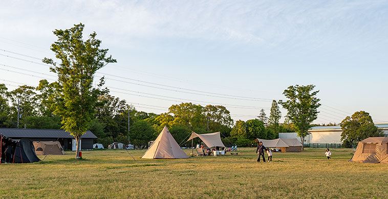 常総運動公園 の一角に新設されたキャンプ場で、すぐ横には鬼怒川が流れている。2022年オープンと新しく、都心からのアクセスも売りのようだ。