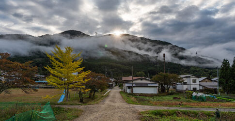 軒先もあって無いような狭さなので、せめて風除けにと壁際に寄せ集まって雨が止むのを待つ。今日は短時間で雨が収まるパターンが続いていたので、少し待てば快方に向かうかもしれない。どちらにしても、この状態でおいそれと先に進むことは出来そうになかった。